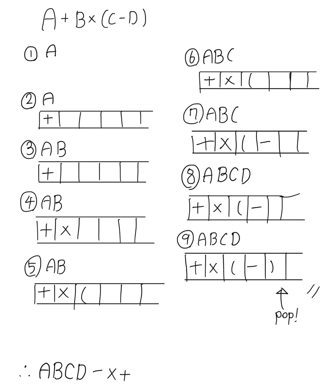 중위 표기법을 후위 표기법으로 바꾸는 방법으로는 주로 스택을 이용한다.