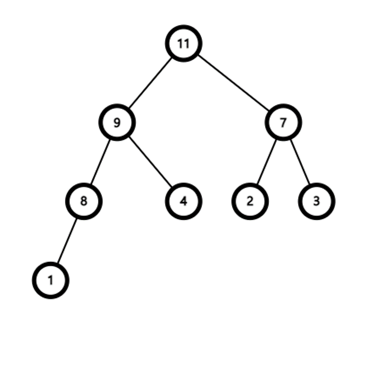4. 부모 노드인 11보다 작으므로 교환을 멈춘다.