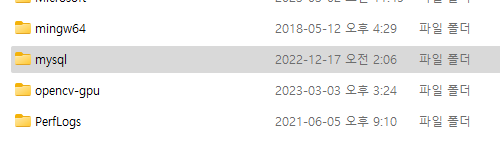 다운받은 ZIP 파일도 압축을 풀어 C 드라이브에 옮겨줍니다. 폴더 이름은 mysql로 바꿔줍니다.