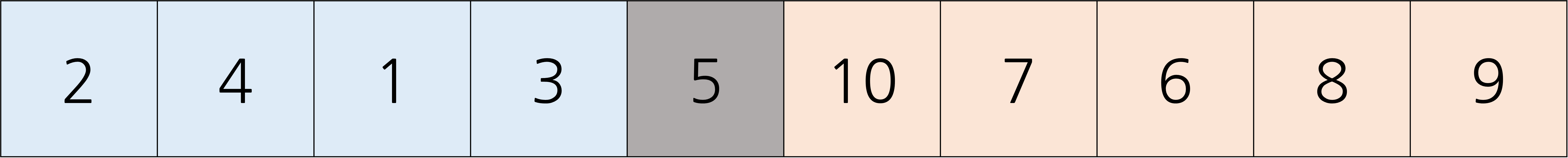 제목이 조금 긴데, 쉽게 말해서 항상 기준 원소를 최대(혹은 최소)로 잡지 않도록 하겠다는 뜻이다. 다시 분할의 경우를 보자. 분할이 계속해서 1:9로 되고, 항상 9인 부분에서 탐색을 지속한다고 하자. 그렇다면 수행 시간은 아래와 같을 것이다.