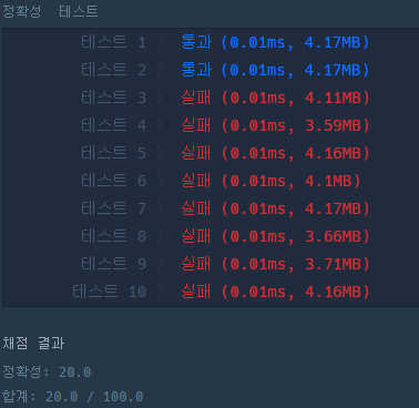 테스트 케이스가 잘 돌아가길래 바로 제출을 눌렀다. 그런데,,