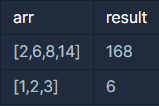 두 수의 최소공배수(Least Common Multiple)란 입력된 두 수의 배수 중 공통이 되는 가장 작은 숫자를 의미합니다. 예를 들어 2와 7의 최소공배수는 14가 됩니다. 정의를 확장해서, n개의 수의 최소공배수는 n 개의 수들의 배수 중 공통이 되는 가장 작은 숫자가 됩니다. n개의 숫자를 담은 배열 arr이 입력되었을 때 이 수들의 최소공배수를 반환하는 함수, solution을 완성해 주세요.