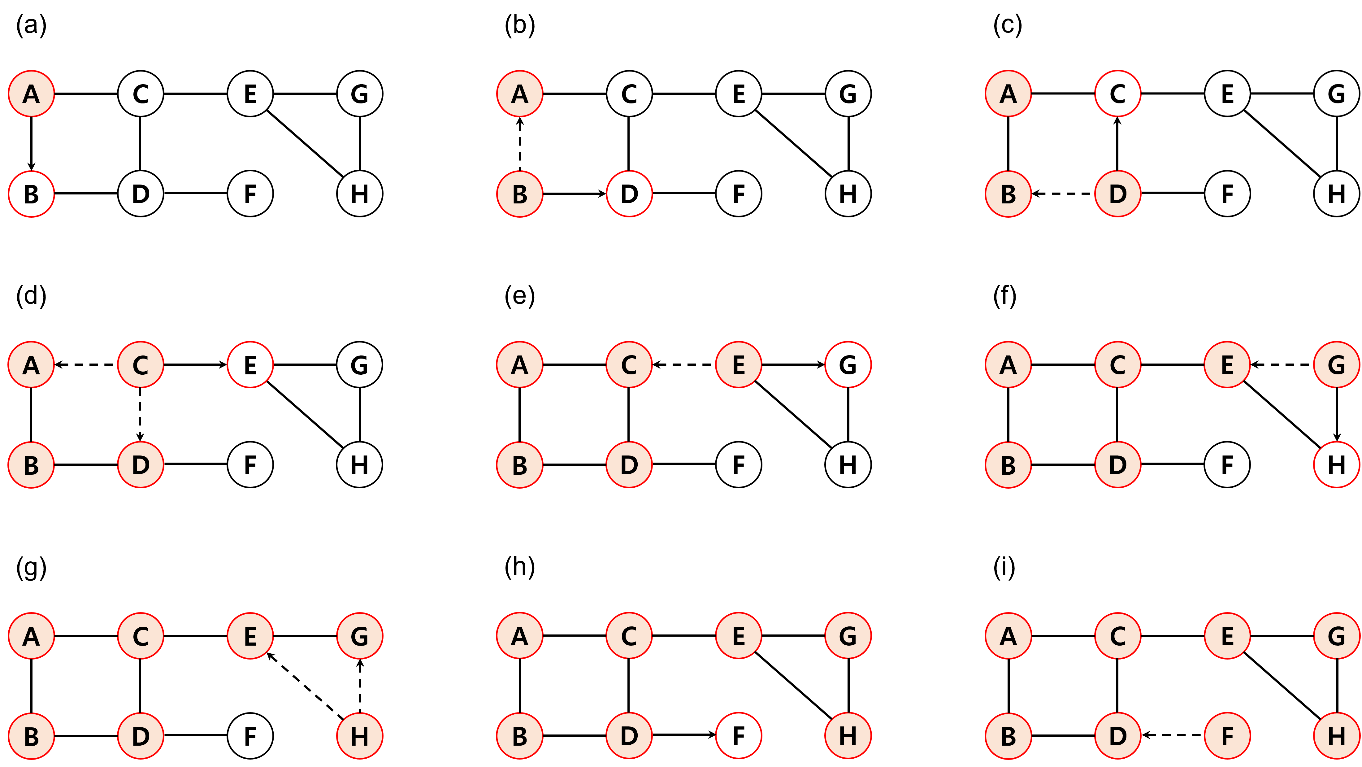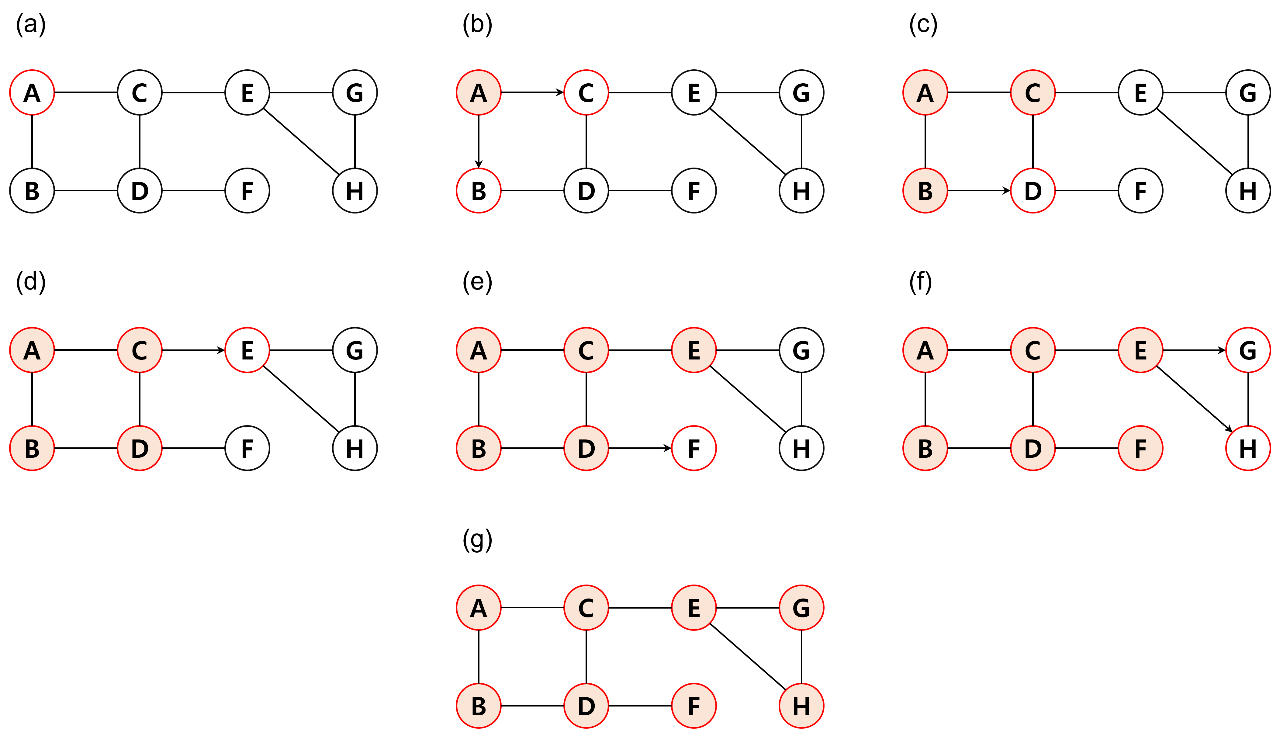 (f) G→H (E는 이미 방문)